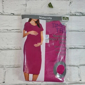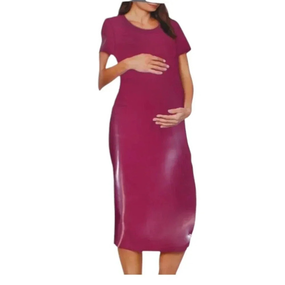 Pink/Fuchsia Womens Maternity Dress Short Sleeve, Side Rouching, Scoop Neck