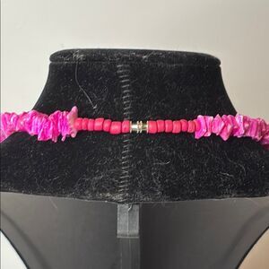 Pink Fuscia Beaded Puka Shell Fashion Necklace 18.5” Length