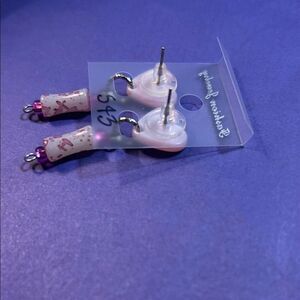 Add a touch of charm with these pink heart dangle earrings. Perfect for any occasion. Handmade 543