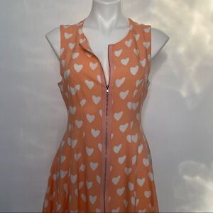 Pink Heart Zipper Front Valentines Day Dress Fit and Flare