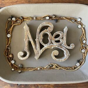 Pink Laundry Noel Decorative Holiday Tray. NWT. Beautiful tray with a raised “Noel” spelled on the bottom adorned with rhinestones/crystals and a braided rope chain.