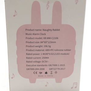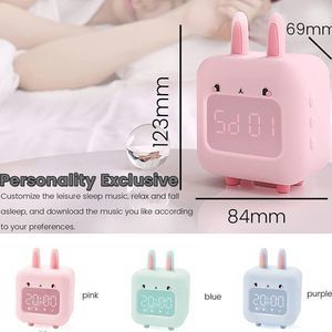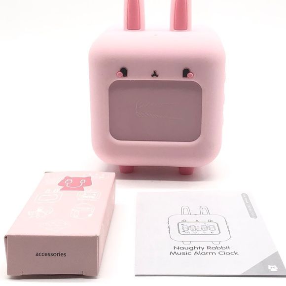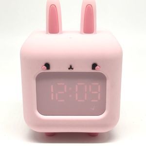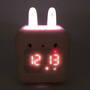 Pink Light Up Smart Rabbit Ears LED Music Alarm Clock,Multi-Functional For Kids