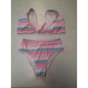 Pink Lily Create Your Own Sunshine Pastel Striped Bikini Two-Piece Swimsuit XS.