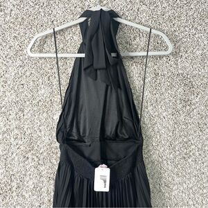 Pink Lily Dress Women’s Medium Black Sleeveless Halter Pleated Maxi NWT