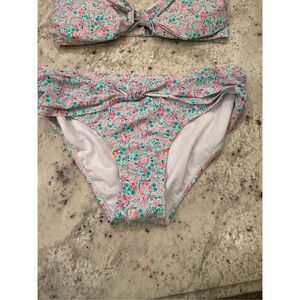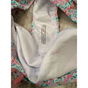 Suit is brand new. The bottom of this one has a tie front different from the one in main photo. We do not measure swimwear. Hygiene strip attached.
