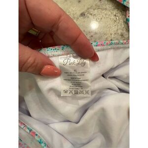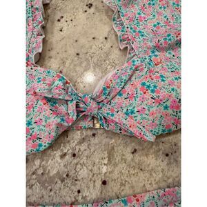 Pink Lily Light Blue Ditsy Floral Print Flutter Sleeve Bikini sz XL NWOT