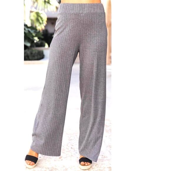 Pink Lily Saving Grace Ribbed Flare Pants.