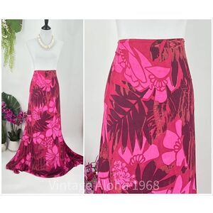 Pink/Maroon Tropical Floral Hawaiian MAXI SARONG Kīkepa Pareo Beach Wrap Skirt