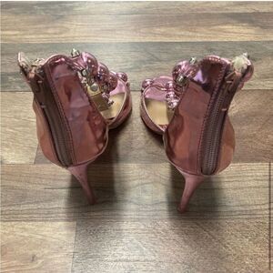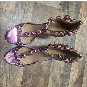 Pink Metallic Womens T Strap Studded High Heels NWOT