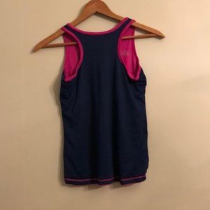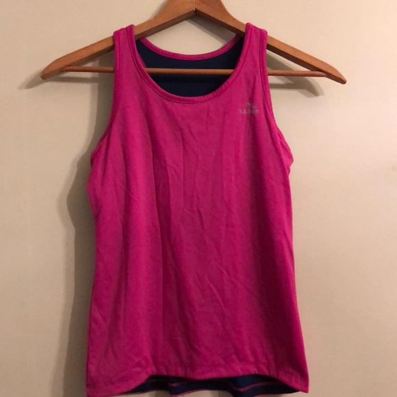 This pink/navy racerback tank is reversible. It is in excellent used condition. It is great for hiking. While I cannot see exactly what size it is, I wear a size women’s xs/s and it fits me. Make me an offer!