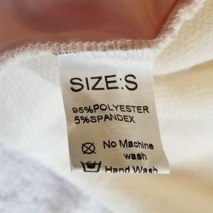 Casual off white and pink tunic with pockets. Color, end of sleeve and pockets are a pink velvet type material. Back is a bit longer than the front. Only worn one time so very good condition. Length is about 27 1/2" front and about 30" in back from should down. Armpit to armpit length is about 19 1/2 - 20"