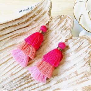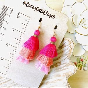 Pink Ombré Tiered Multi Color Tassel Drop Earrings NWT are brand new in packaging