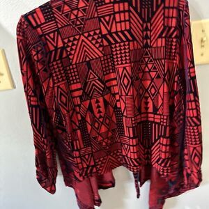 Pink Owl Red Velvet Blue Print Open Shawl Size Small