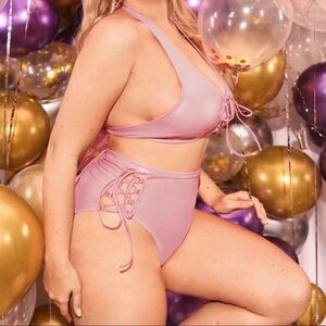 Ladies super cute pink pu vegan leather 2 piece bra and panties set. New with tags. Please refer to size chart to compare your measurements with that of the garment.