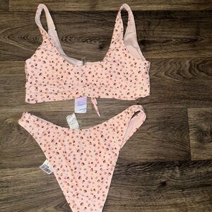 Chic light pink bikini with playful polka dots. Ideal for sunny beach outings.