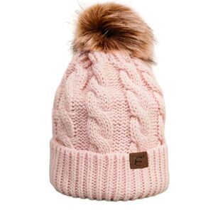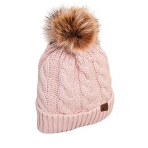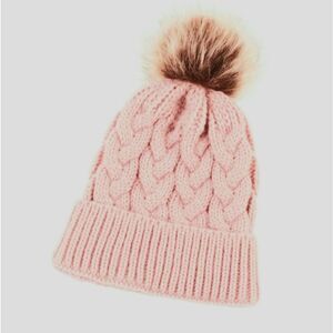 New. Pom pom beanie. Pink cableknit beanie hat with soft, faux fur pom pom. *Reasonable* offers only please.