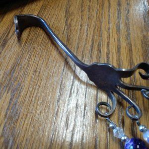It is made of a variety of beads and recycled silverware