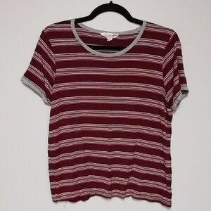 Maroon, white, gray and pink ringer shirt. Excellent preloved condition!