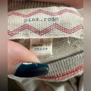 Pink.Rose light crew neck sweatshirt with striped sleeves. Size small. Grey with orange stitching and striped sleeves. Slim fit. Great condition