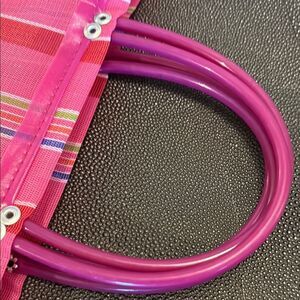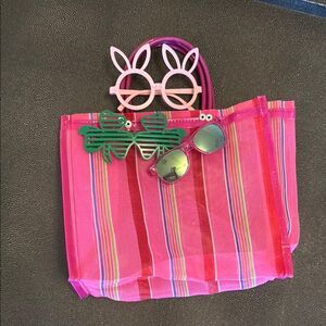 Brighten up your child's day with this vibrant pink striped tote bag, perfect for carrying essentials. Comes with fun sunglasses for a playful touch.