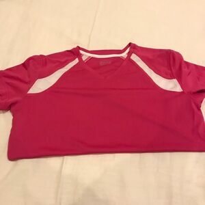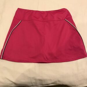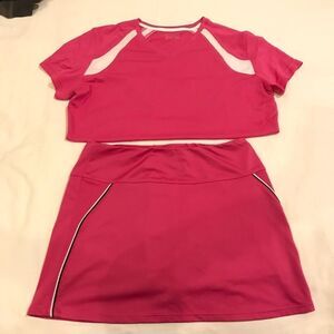 Matching pink tennis skirt and shirt. Breathable materials. Both kids XL/adult S. Built in shorts to skirt
