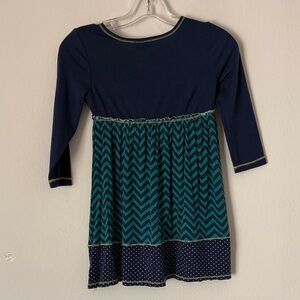Stylish chevron pattern dress. Navy top with teal skirt. Perfect for casual wear.