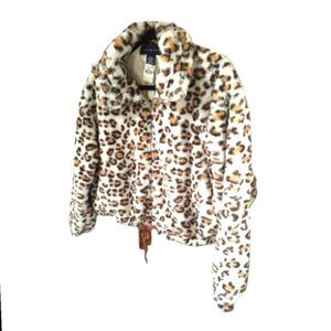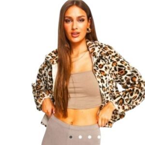 Women's Super Soft Faux -Fur Leopard Print Cropped Jacket.