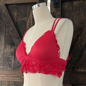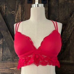 Pink Victoria’s Secret red push up bralette bra strappy Sz-Small
