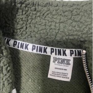 Pink Victoria’s Secret Green Sherpa Fleece Pullover Womens Size XS