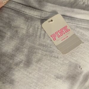 This New with tags gray and white tie dyed short sleeve Pink Victoria's Secret "Pink Floyd" Dark Side Of The Moon oversized tee is a size Small with a pit to pit measuring 24". 100% cotton and machine washable. All offers are welcome.
