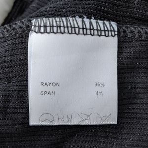 Black ribbed, stretchy henley from Brooklyn's PinkYotto with notch and button trim.
