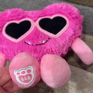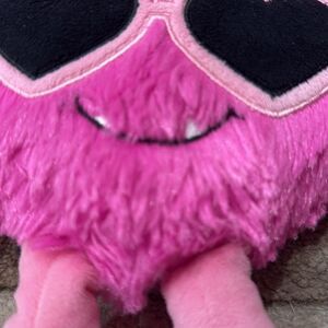 This whimsical accent pillow features a vibrant pink heart design adorned with playful black heart-shaped sunglasses. Its plush texture and unique style make it a standout piece, perfect for adding a fun touch to any room.