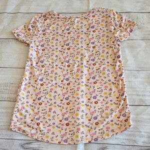 This short-sleeved tee features a delicate floral print in pink and purple hues, perfect for a relaxed and casual look. The soft fabric and loose-fitting silhouette make it ideal for warm weather, while the high-low hem adds a touch of style.