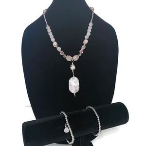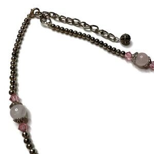 Pink and White Stone Beaded Necklace with Silver-Tone.