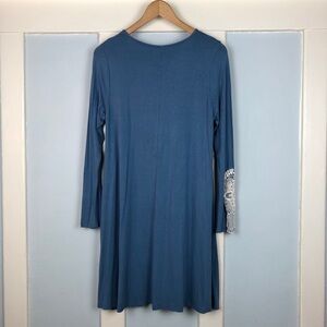 Pinkblush blue maternity dress with crochet accents on sleeves.