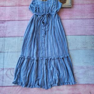 Pinkblush David & Dani Blue Striped Button Front Plus Maternity Midi Dress 2X