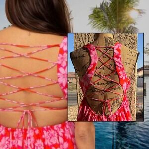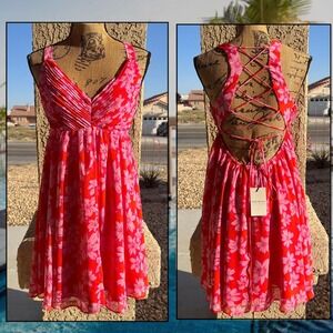 Pinkblush Floral Chiffon Open Lace-Up Back Sleeveless Maternity Dress Size L