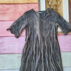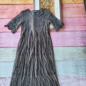 Pinkblush Gray Embroidered Lace Overlay Short Sleeve Maternity Maxi Dress S/M