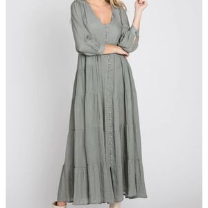 Pinkblush In Loom Light Olive Button Front Tiered A-line Maternity Maxi Dress S