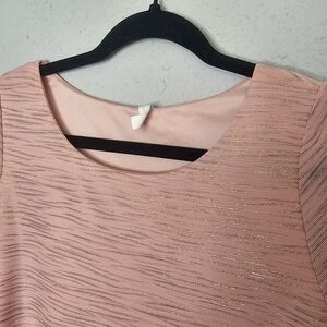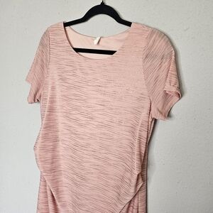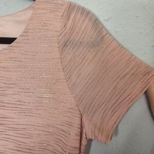 Pinkblush Maternity Pink Gold Metallic Short Sleeve Midi Lined Dress Size Medium