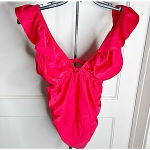 Pinkblush Red Ruffle Tie Maternity One-Piece Swimsuit Nwot Small