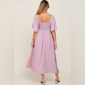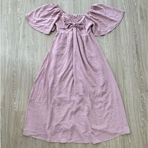 Pinkblush Swiss dot mauve flutter sleeve midi nwot
