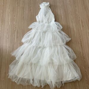 Pinkblush White Halter Maxi Gown with Ruffled Tiered Skirt