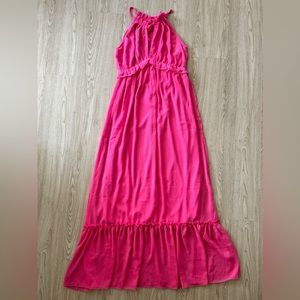 Pinkblush chiffon hot pink ruffle trim maxi dress nwt