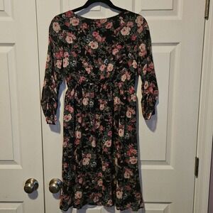Pinkblush maternity long sleeve knee length‎ dress navy florals size medium