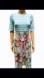 A colorblock maternity plus maxi dress with a striped top and a floral print skirt. Additional details include 3/4 sleeves, a rounded neckline, a cinched elastic waistline, belt loops with a sash tie, side pockets, and double lined bust.