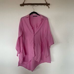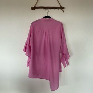 Pink button up asymmetrical button up top / coverup
