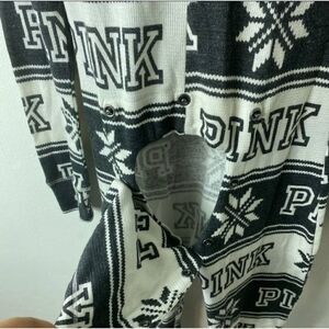 Cute fair isle snowflake onesie from Pink by Victoria's Secret. Snap front and snap flap on the butt that opens.