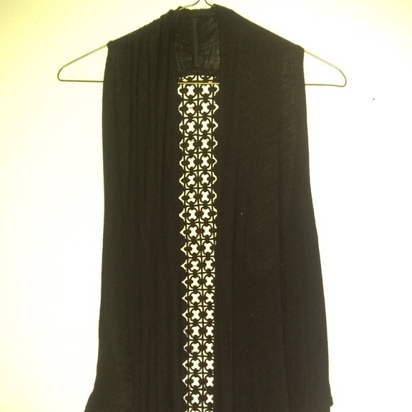 Open vest. 100 percent Rayon. Lattice inlay on back. Juniors Size Small. Made in USA. Hand Wash.