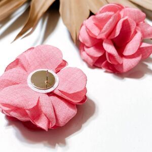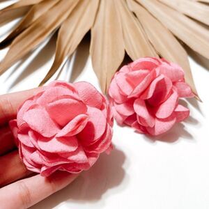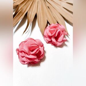 Large Pink fabric flower statement stud earrings in gold tone